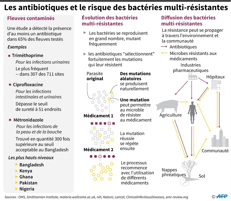 Par AFP le 28.05.2019 à 18h53 sciences et avenir De l'Europe à l'Asie en passant par l'Afrique, les concentrations d'antibiotiques relevées dans certaines rivières du monde dépassent largement les niveaux acceptables, met en garde une étude présentée lundi. Une équipe de chercheurs de York a analysé des prélèvements effectués sur 711 sites dans 72 pays sur six continents et a détecté au moins un des 14 antibiotiques recherchés dans 65% des échantillons, selon un communiqué de...